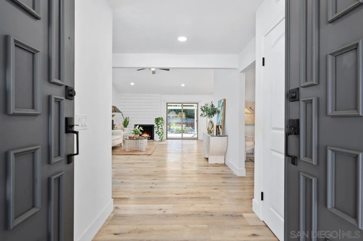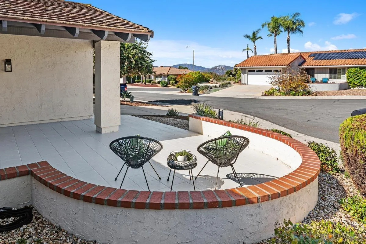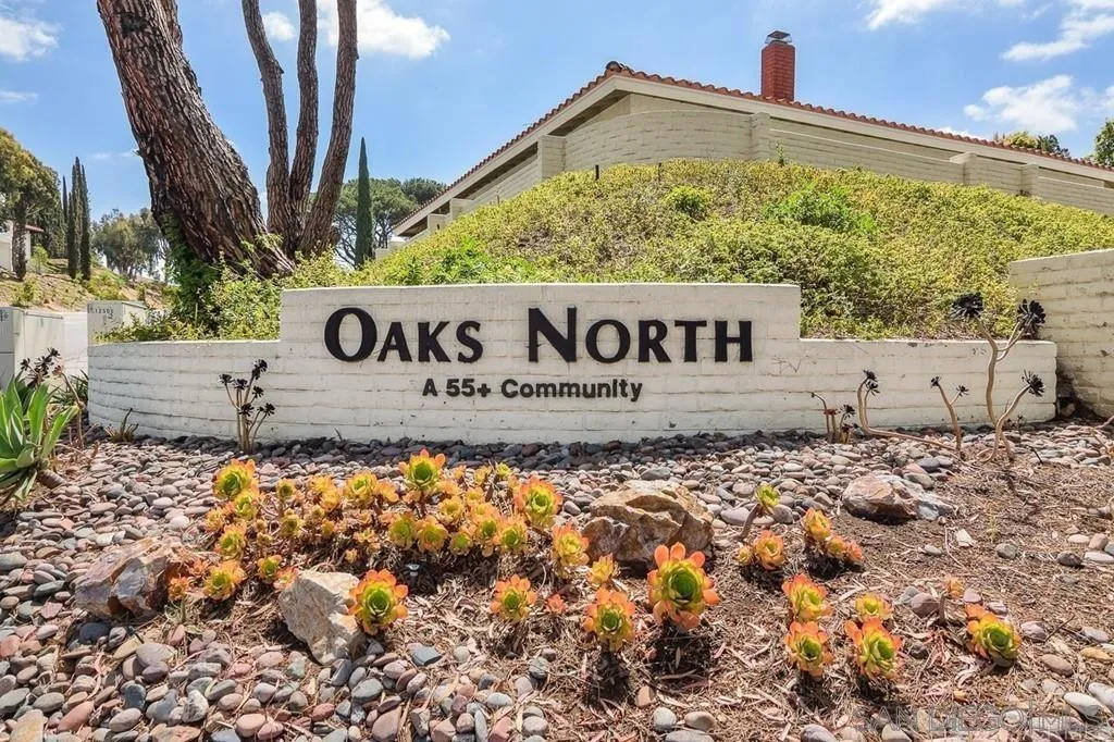 ***Gorgeous Completely Remodeled Home Tucked Into a Quiet Cul-de-Sac in Rancho Bernardo's Desirable Oaks North 55+ Community***This single story home offers the perfect blend of modern comfort and resort-style living! Relax and enjoy mountain views from the front veranda.***Located less than a mile from the Community Center and just one mile from Bernardo Winery, the home provides the ideal balance of retreat-style privacy and convenient access to some of RB's best amenities.**The fully renovated interior showcases airy vaulted ceilings, luxury wood vinyl plank flooring, and recessed lighting throughout. In the chef's kitchen, you'll find custom Shaker cabinetry, quartz counters, and ceiling height designer tile backsplash. It also features high-end stainless appliances and an eat-in peninsula with extra storage which seamlessly articulates the kitchen and dining areas.**The open floor plan offers distinct living & family rooms ideal for entertaining and relaxing. Both bathrooms are fully remodeled with designer countertops, tiles, lighting, flooring and fixtures.***The primary suite includes dual closets with mirrored doors, dual sinks and a walk-in shower. The 2nd bathroom provides a deep soaking tub.**Beautiful backyard views enhance the tranquility of the living areas and invite into the private oasis. Thoughtful low-maintenance landscaping with lush plantings and multiple patio areas are perfect for dining and entertaining.**Enjoy vacation-like living all year with access to Oaks North CC offering a gorgeous, lush 27-hole golf course and amazing Resort-Style Amenities!