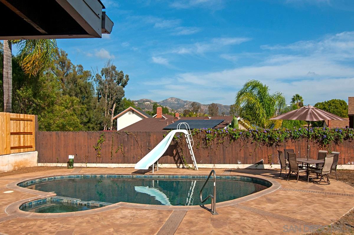 Amazing opportunity to create the home of your dreams. Granite counters in kitchen with custom made cabinetry and upgraded bathrooms.Tons of potential. This four bedroom home is situated on a great lot on end of street with no through traffic making it ideal for a young family. Newer roof, owned Solar, hot water resurc. system, great bones, new backyard fencing and sparkling pool! Close to shops and in award winning Poway Unified School District. No HOA or Mello-Roos. Needs some personal TLC.