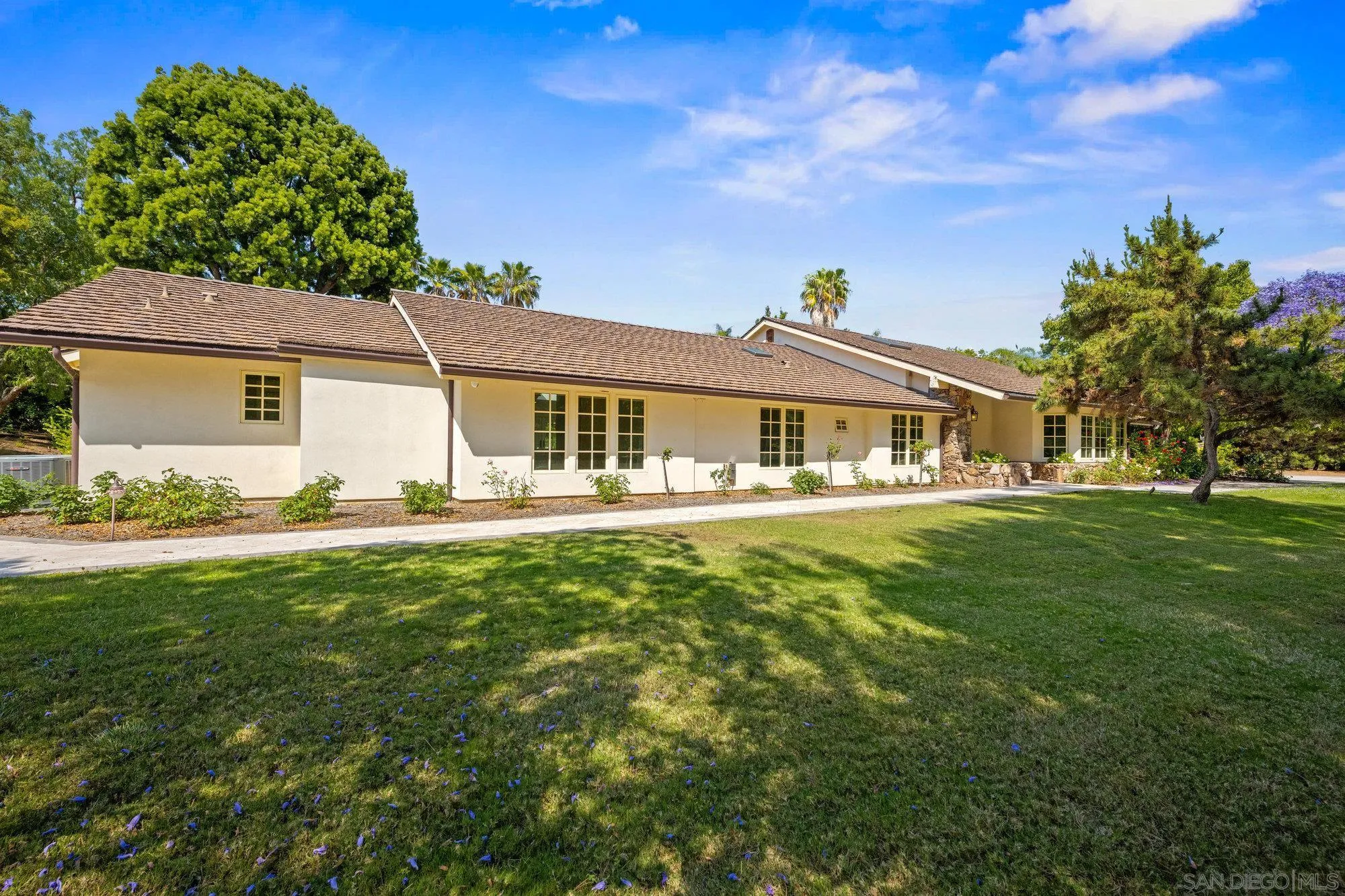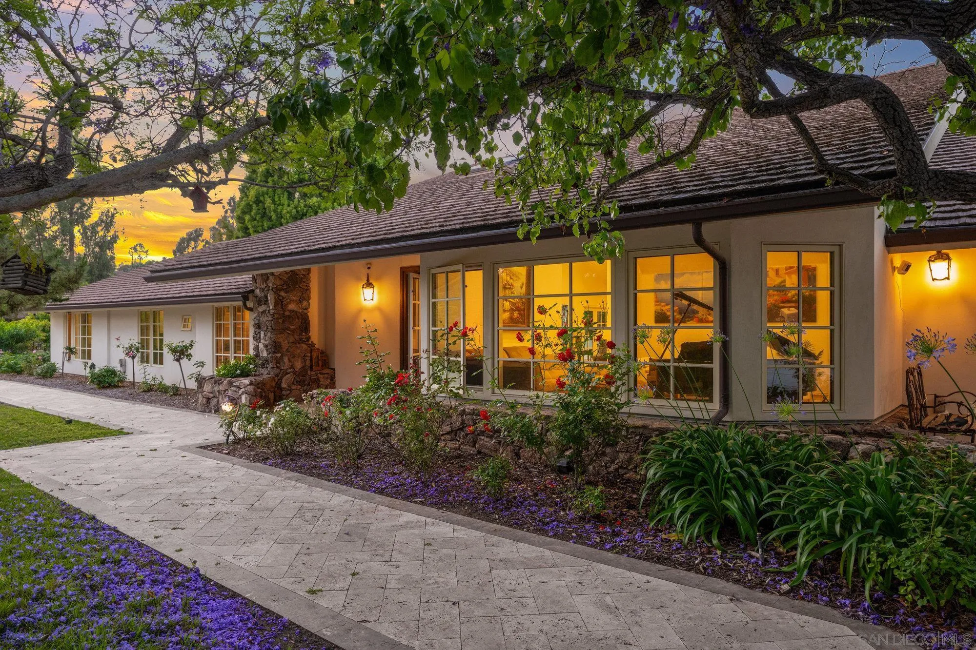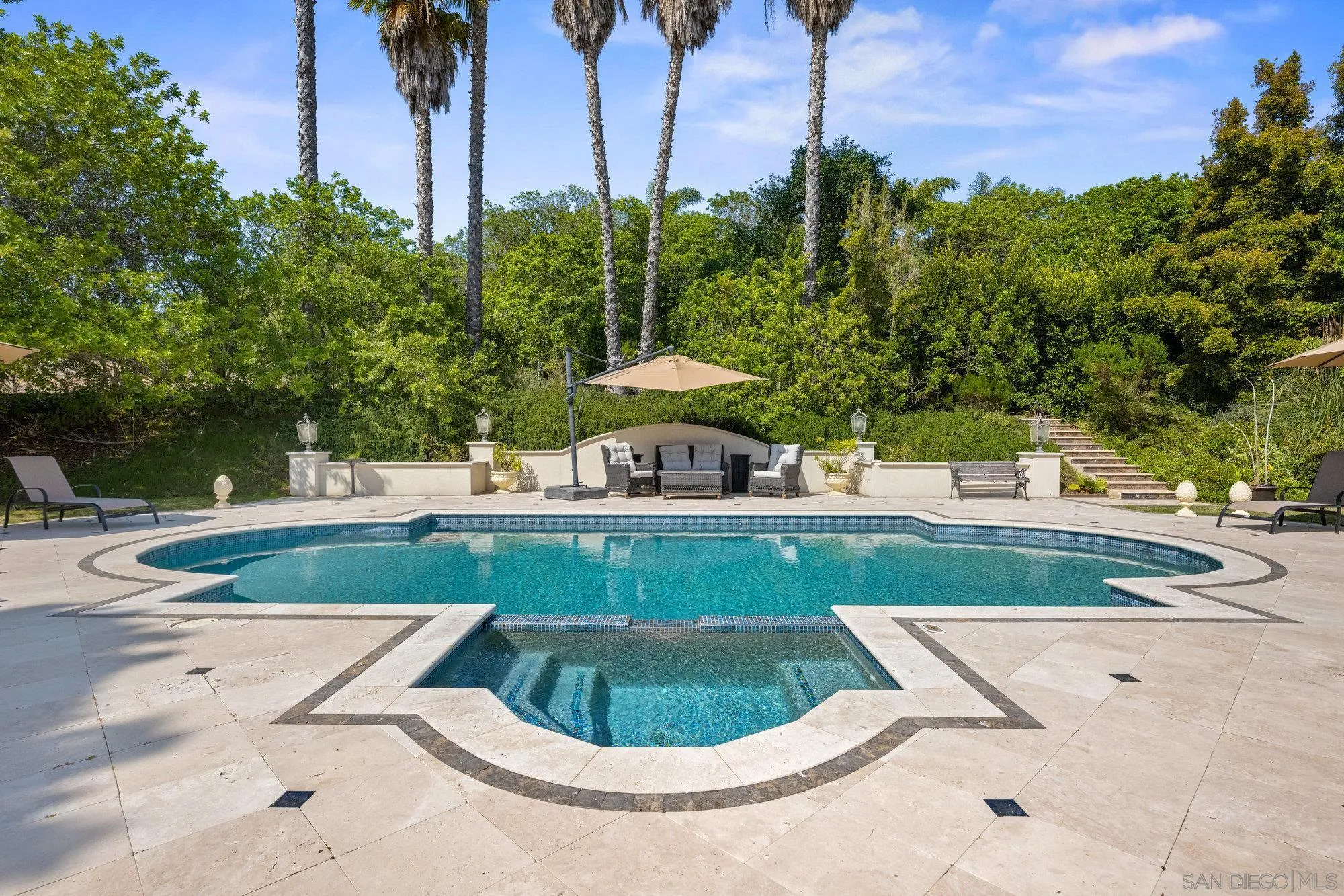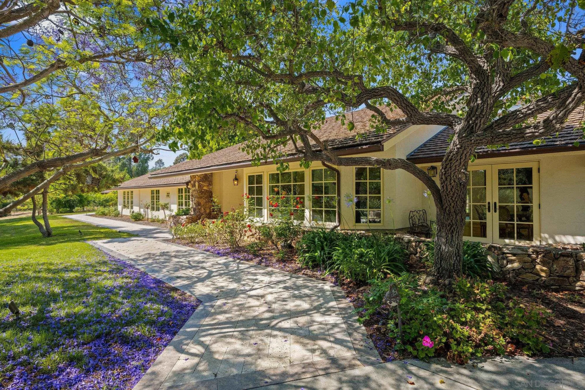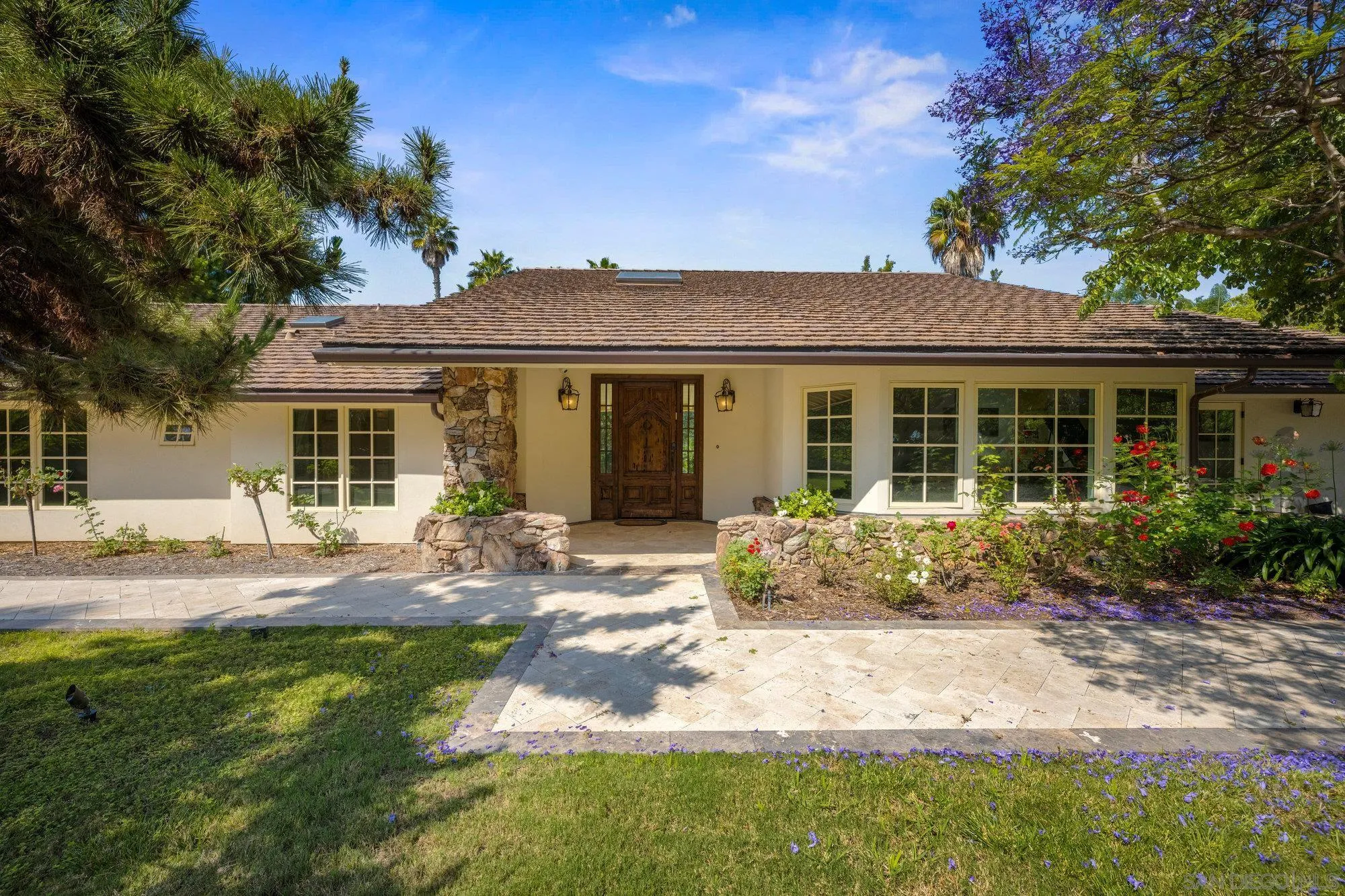 Experience elevated one-level living on 2.75 ultra-private, flat acres in Rancho Santa Fe's exclusive Covenant. Rebuilt in 2017 with meticulous attention to detail, this 4,550 sq ft custom estate blends timeless European design with modern California ease. The open-concept floor plan features 5 en suite bedrooms and 5.5 baths, soaring ceilings, and expansive living spaces filled with natural light. The chef's kitchen is a true centerpiece, showcasing sleek European cabinetry, top-of-the-line Miele appliances including dual cooktops and warming drawer, plus whole-home water filtration. A formal dining space and stone-clad fireplace anchor the seamless transition to the elegant family room, creating an inviting space for both entertaining and everyday living. Curated with designer stonework, custom fireplaces, and smart home features--including integrated speakers and security cameras--this home offers effortless sophistication. Outside, enjoy lush landscaping, a sparkling pool and spa, covered patio, and ample parking for up to 18 vehicles. A separate dog wash station with private access adds thoughtful convenience. Located on the desirable west side of the Covenant, minutes from Roger Rowe School, RSF Golf & Tennis Clubs, and village amenities. This is Rancho Santa Fe luxury at its finest--single-level, serene, and simply exceptional.