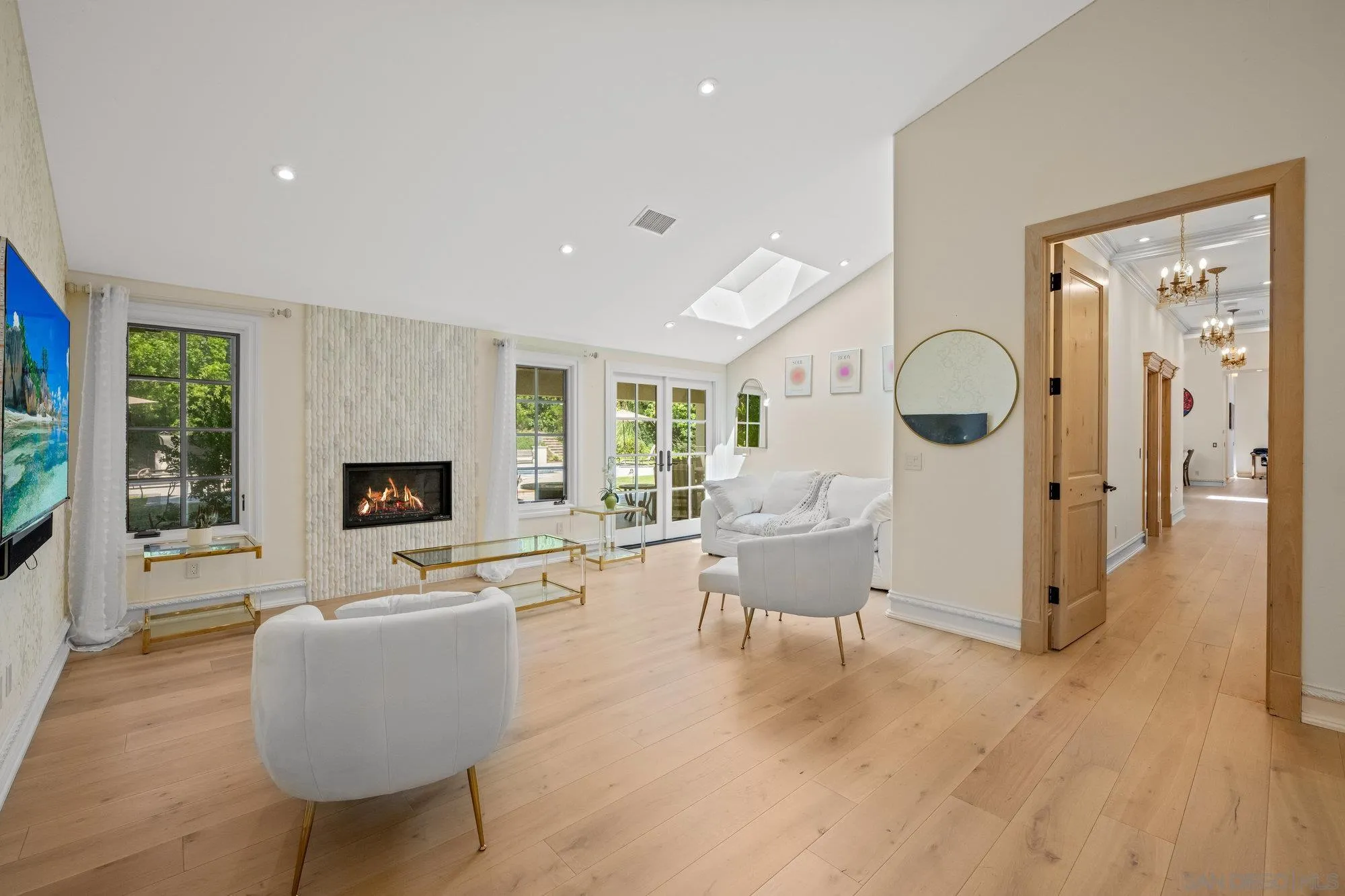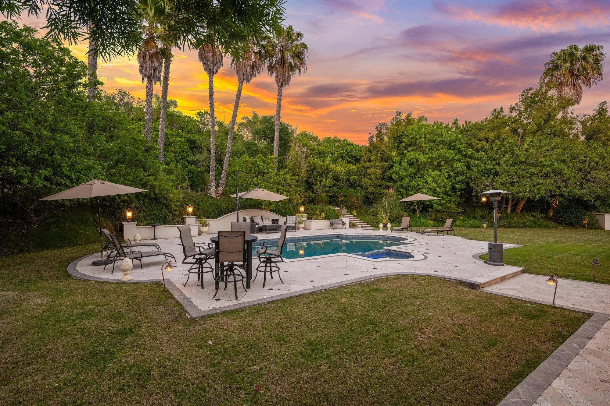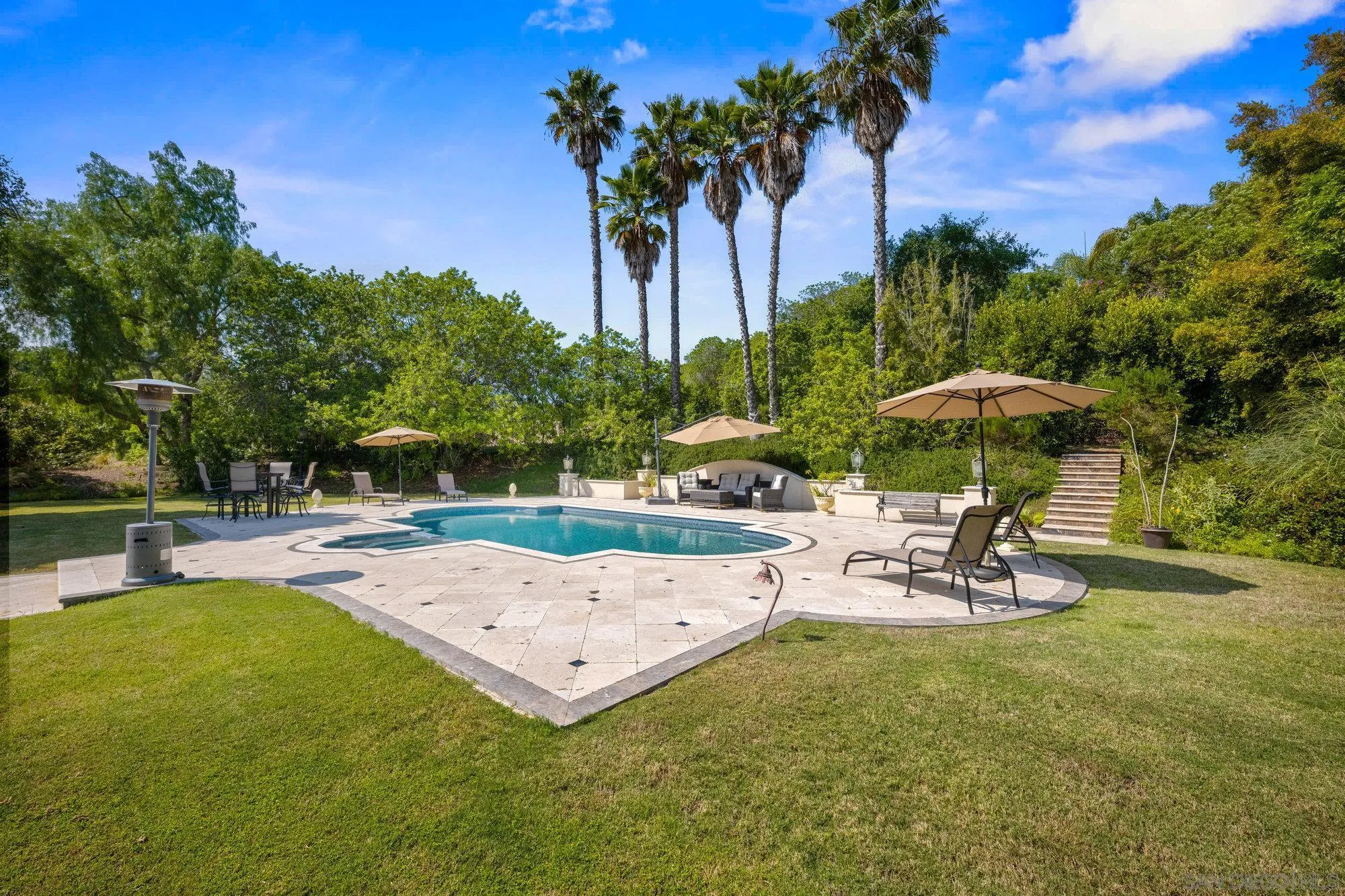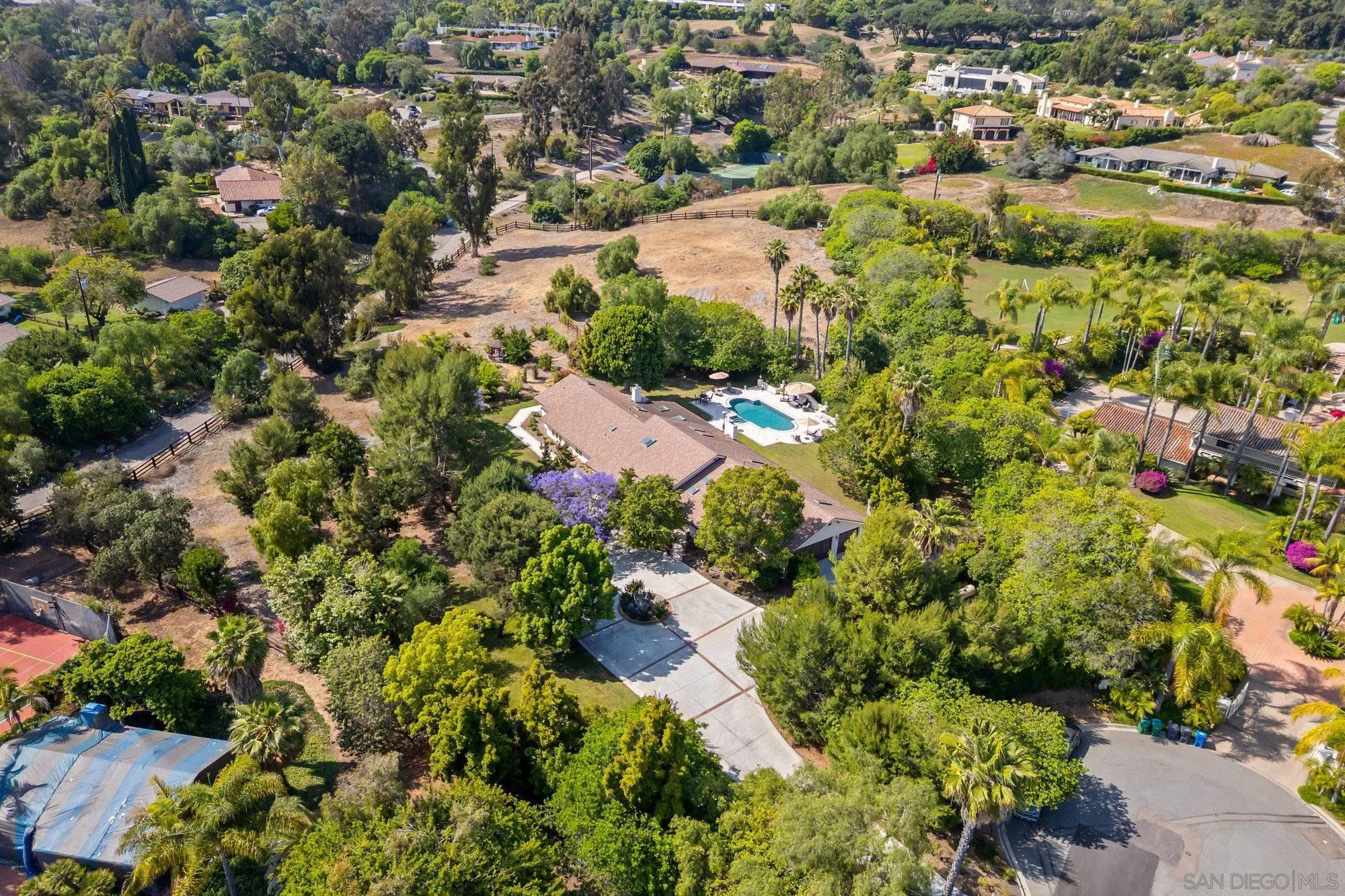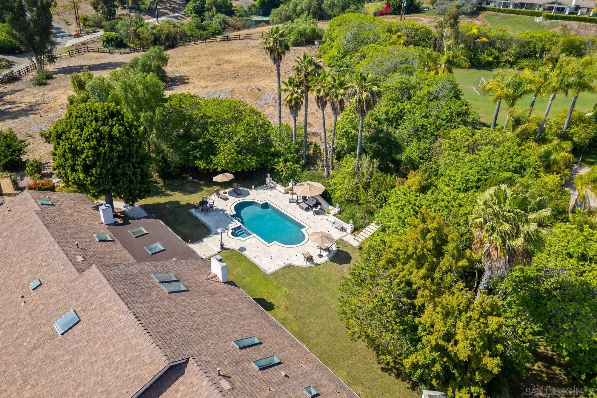 Experience elevated one-level living on 2.75 ultra-private, flat acres in Rancho Santa Fe's exclusive Covenant. Rebuilt in 2017 with meticulous attention to detail, this 4,550 sq ft custom estate blends timeless European design with modern California ease. The open-concept floor plan features 5 en suite bedrooms and 5.5 baths, soaring ceilings, and expansive living spaces filled with natural light. The chef's kitchen is a true centerpiece, showcasing sleek European cabinetry, top-of-the-line Miele appliances including dual cooktops and warming drawer, plus whole-home water filtration. A formal dining space and stone-clad fireplace anchor the seamless transition to the elegant family room, creating an inviting space for both entertaining and everyday living. Curated with designer stonework, custom fireplaces, and smart home features--including integrated speakers and security cameras--this home offers effortless sophistication. Outside, enjoy lush landscaping, a sparkling pool and spa, covered patio, and ample parking for up to 18 vehicles. A separate dog wash station with private access adds thoughtful convenience. Located on the desirable west side of the Covenant, minutes from Roger Rowe School, RSF Golf & Tennis Clubs, and village amenities. This is Rancho Santa Fe luxury at its finest--single-level, serene, and simply exceptional.