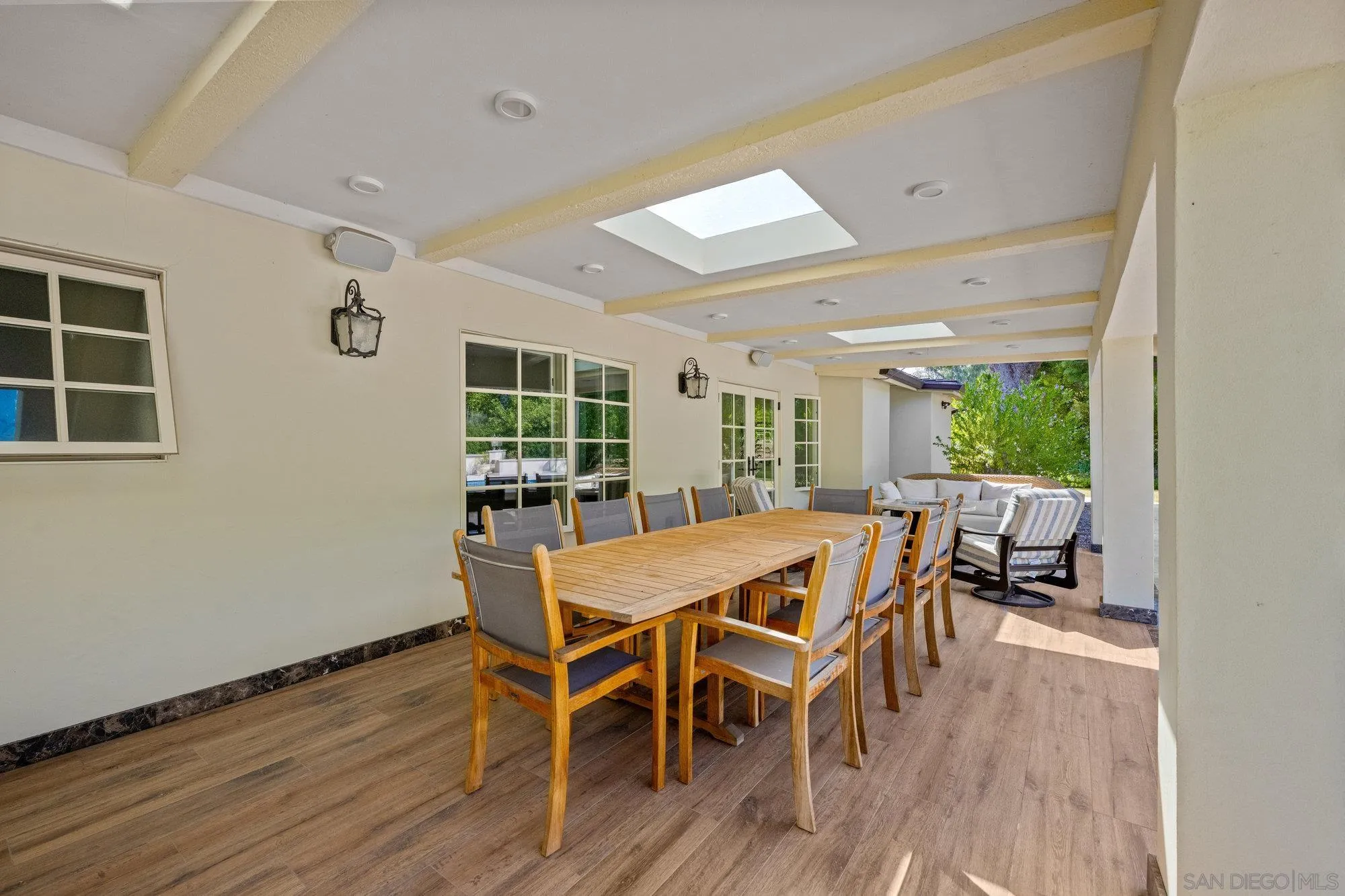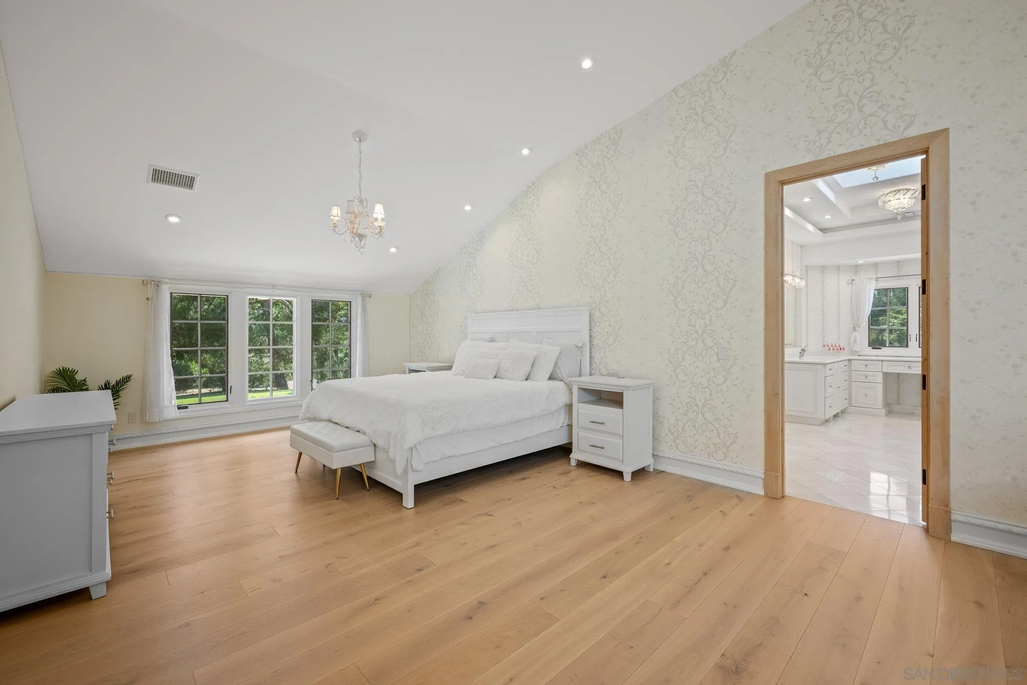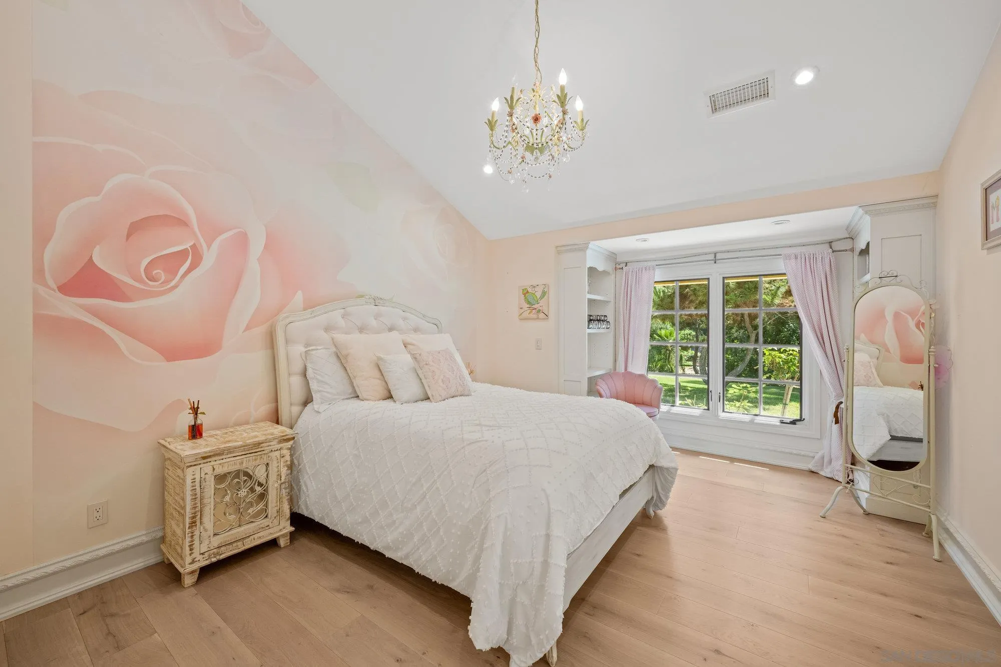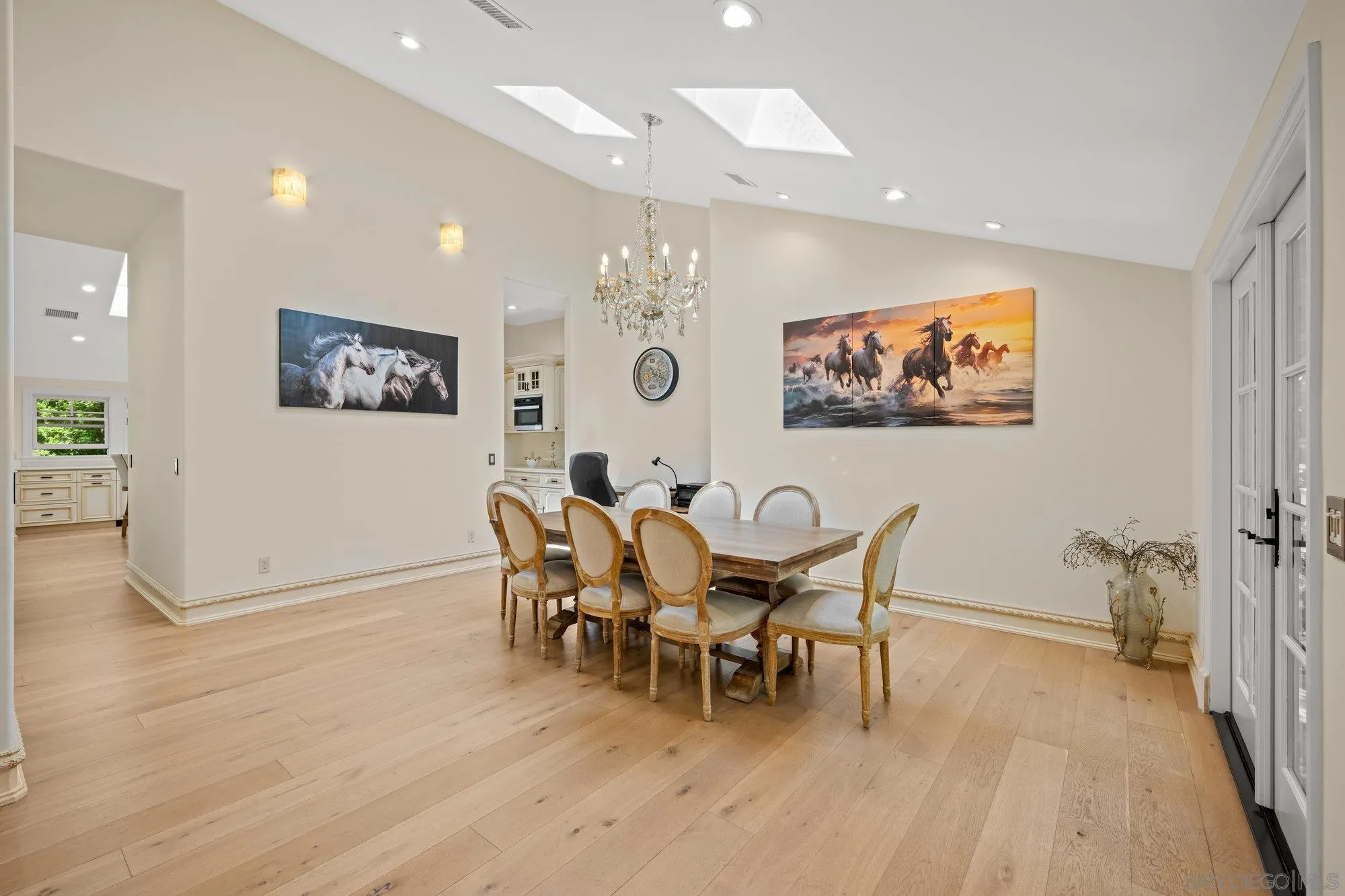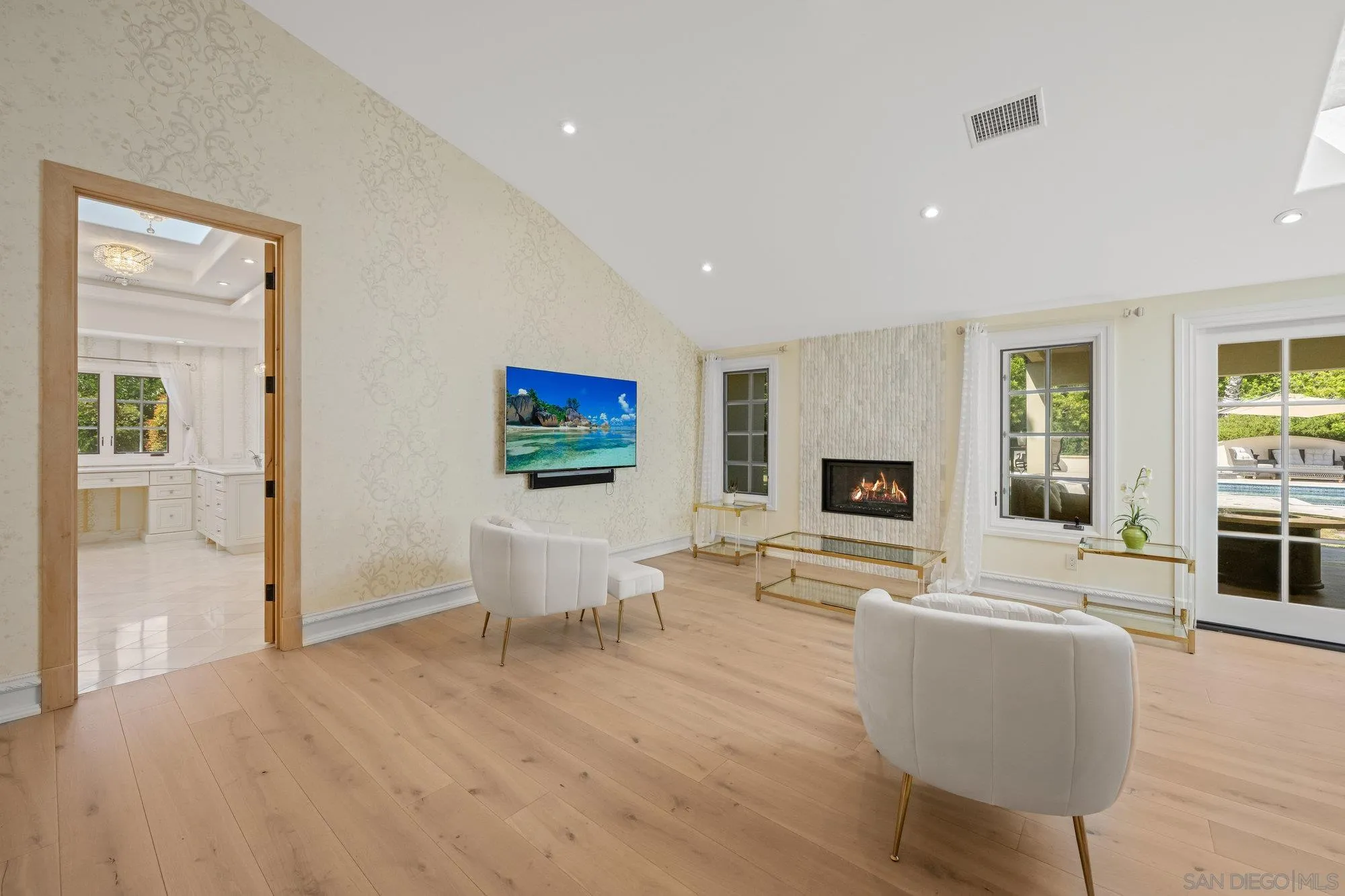 Experience elevated one-level living on 2.75 ultra-private, flat acres in Rancho Santa Fe's exclusive Covenant. Rebuilt in 2017 with meticulous attention to detail, this 4,550 sq ft custom estate blends timeless European design with modern California ease. The open-concept floor plan features 5 en suite bedrooms and 5.5 baths, soaring ceilings, and expansive living spaces filled with natural light. The chef's kitchen is a true centerpiece, showcasing sleek European cabinetry, top-of-the-line Miele appliances including dual cooktops and warming drawer, plus whole-home water filtration. A formal dining space and stone-clad fireplace anchor the seamless transition to the elegant family room, creating an inviting space for both entertaining and everyday living. Curated with designer stonework, custom fireplaces, and smart home features--including integrated speakers and security cameras--this home offers effortless sophistication. Outside, enjoy lush landscaping, a sparkling pool and spa, covered patio, and ample parking for up to 18 vehicles. A separate dog wash station with private access adds thoughtful convenience. Located on the desirable west side of the Covenant, minutes from Roger Rowe School, RSF Golf & Tennis Clubs, and village amenities. This is Rancho Santa Fe luxury at its finest--single-level, serene, and simply exceptional.