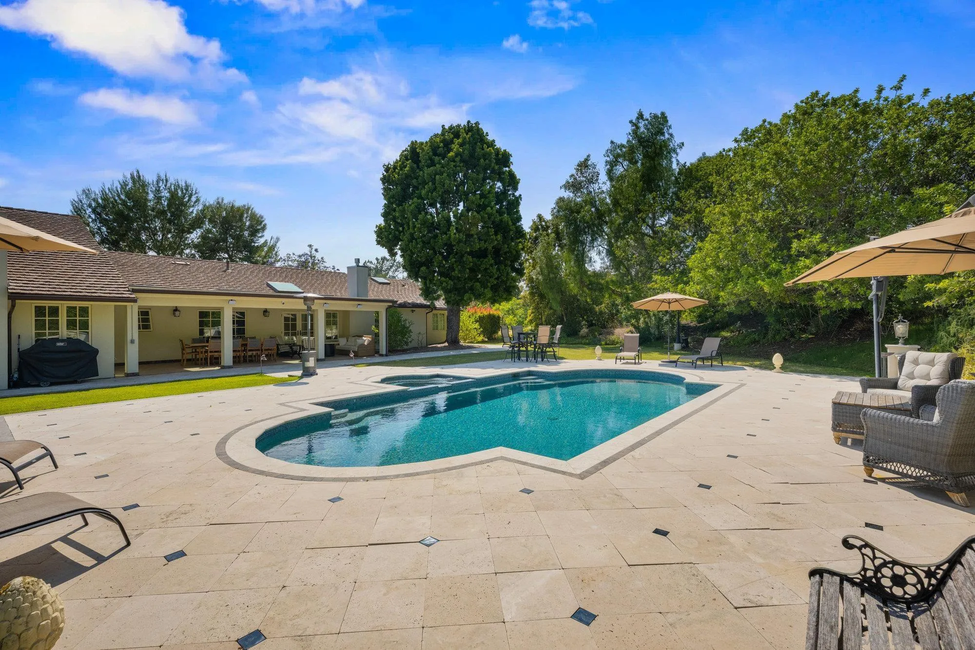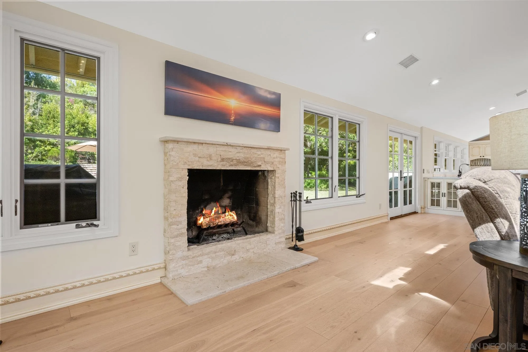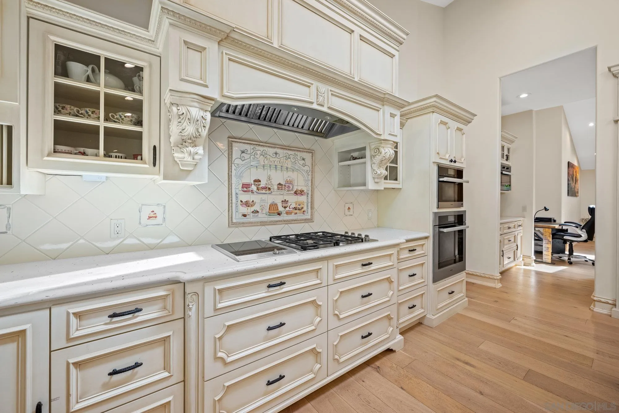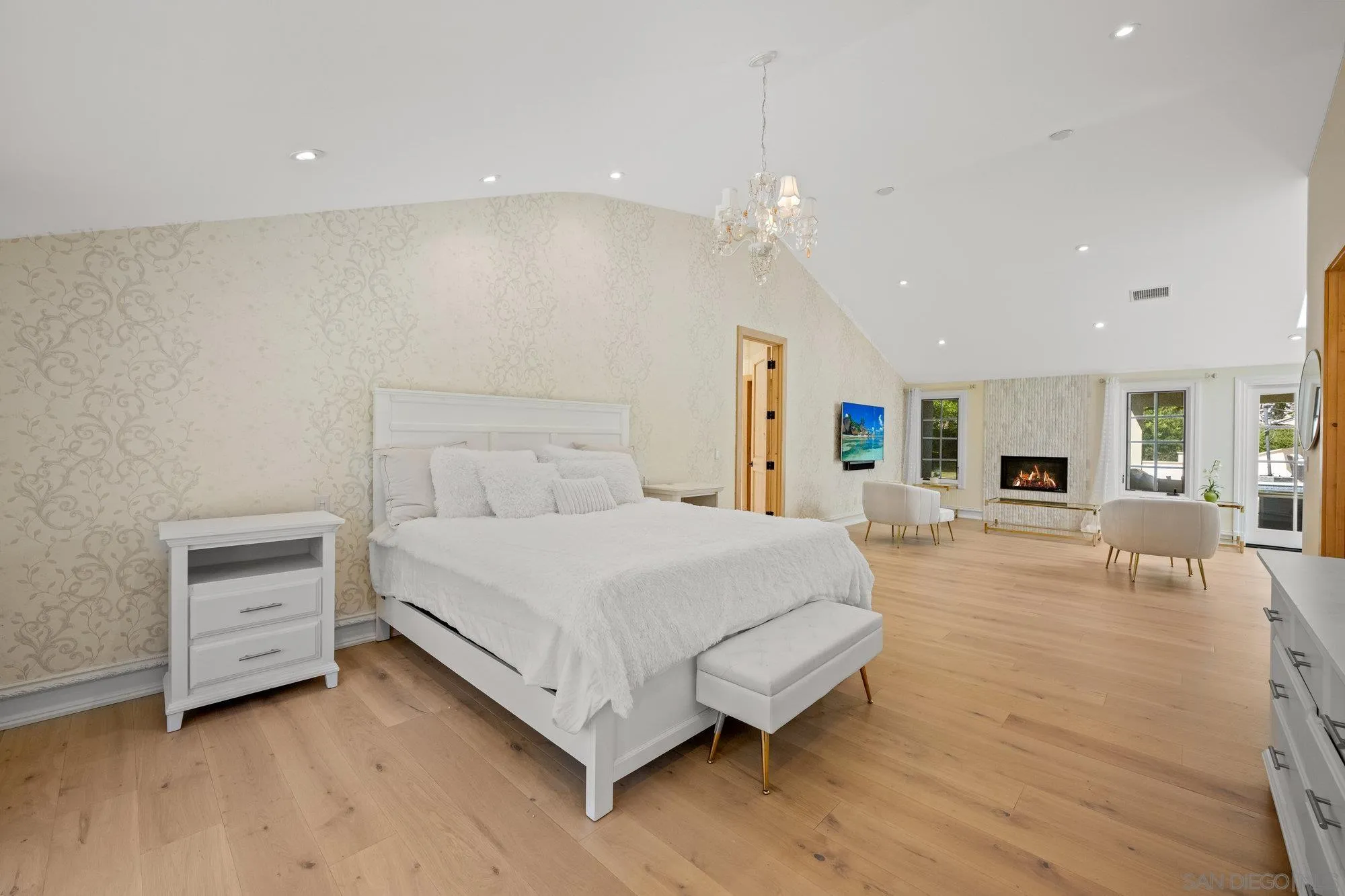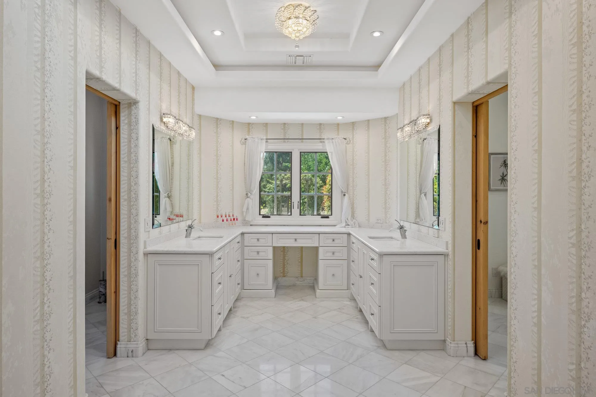 Experience elevated one-level living on 2.75 ultra-private, flat acres in Rancho Santa Fe's exclusive Covenant. Rebuilt in 2017 with meticulous attention to detail, this 4,550 sq ft custom estate blends timeless European design with modern California ease. The open-concept floor plan features 5 en suite bedrooms and 5.5 baths, soaring ceilings, and expansive living spaces filled with natural light. The chef's kitchen is a true centerpiece, showcasing sleek European cabinetry, top-of-the-line Miele appliances including dual cooktops and warming drawer, plus whole-home water filtration. A formal dining space and stone-clad fireplace anchor the seamless transition to the elegant family room, creating an inviting space for both entertaining and everyday living. Curated with designer stonework, custom fireplaces, and smart home features--including integrated speakers and security cameras--this home offers effortless sophistication. Outside, enjoy lush landscaping, a sparkling pool and spa, covered patio, and ample parking for up to 18 vehicles. A separate dog wash station with private access adds thoughtful convenience. Located on the desirable west side of the Covenant, minutes from Roger Rowe School, RSF Golf & Tennis Clubs, and village amenities. This is Rancho Santa Fe luxury at its finest--single-level, serene, and simply exceptional.