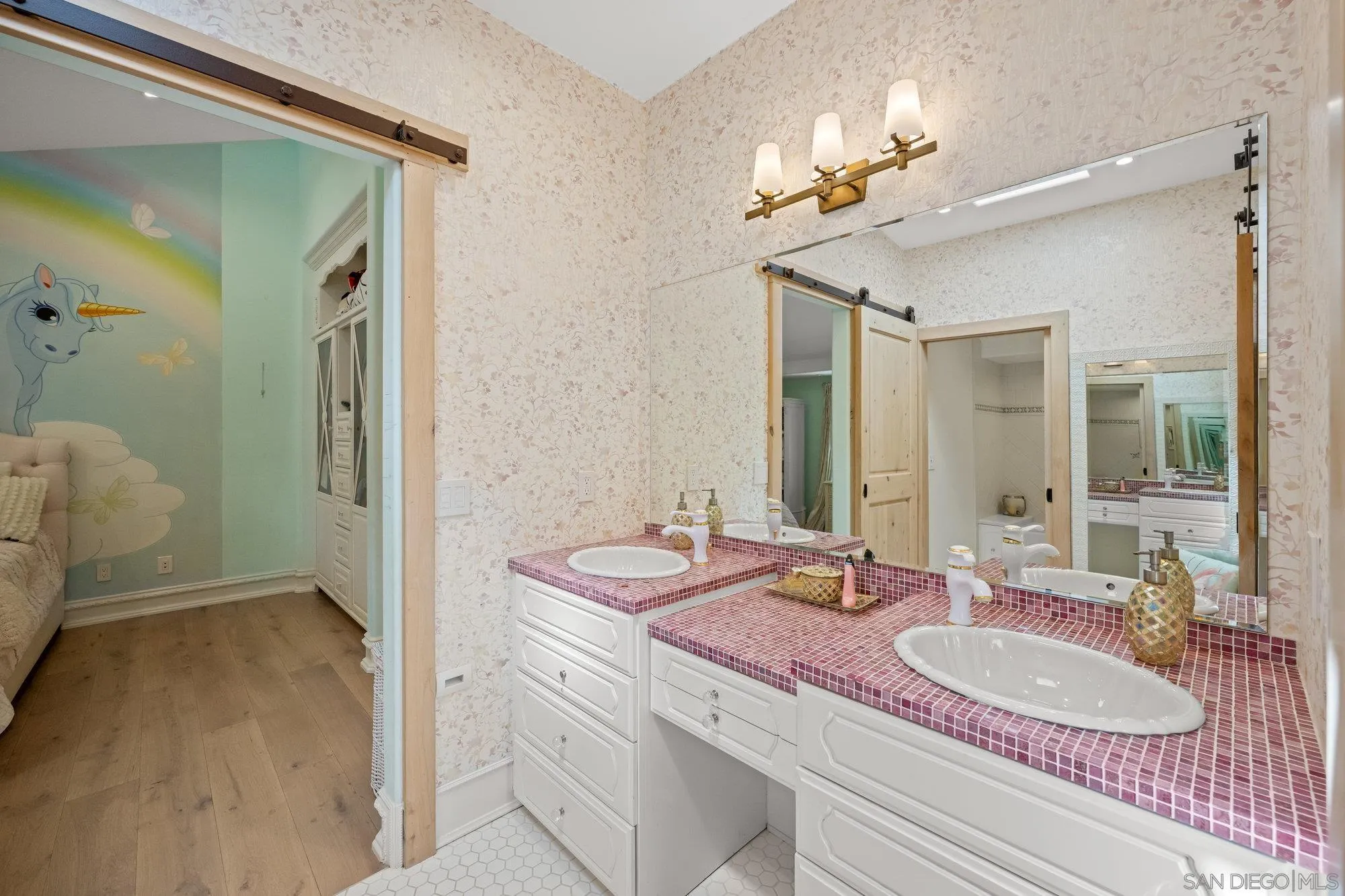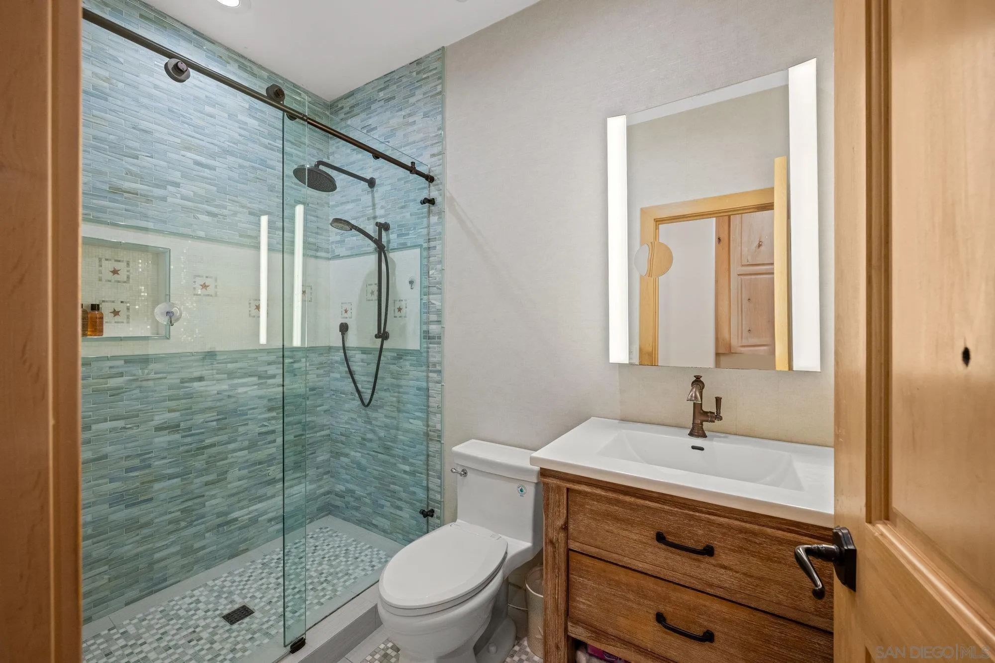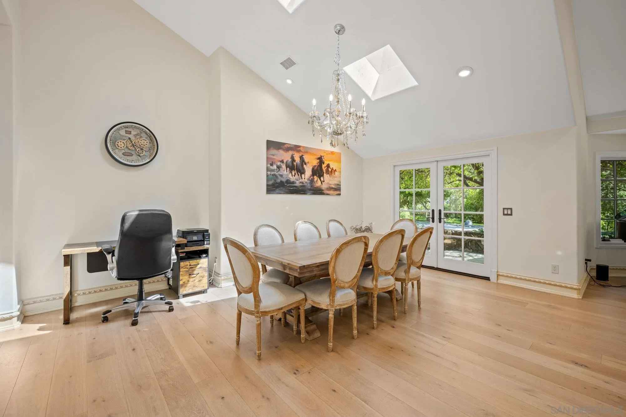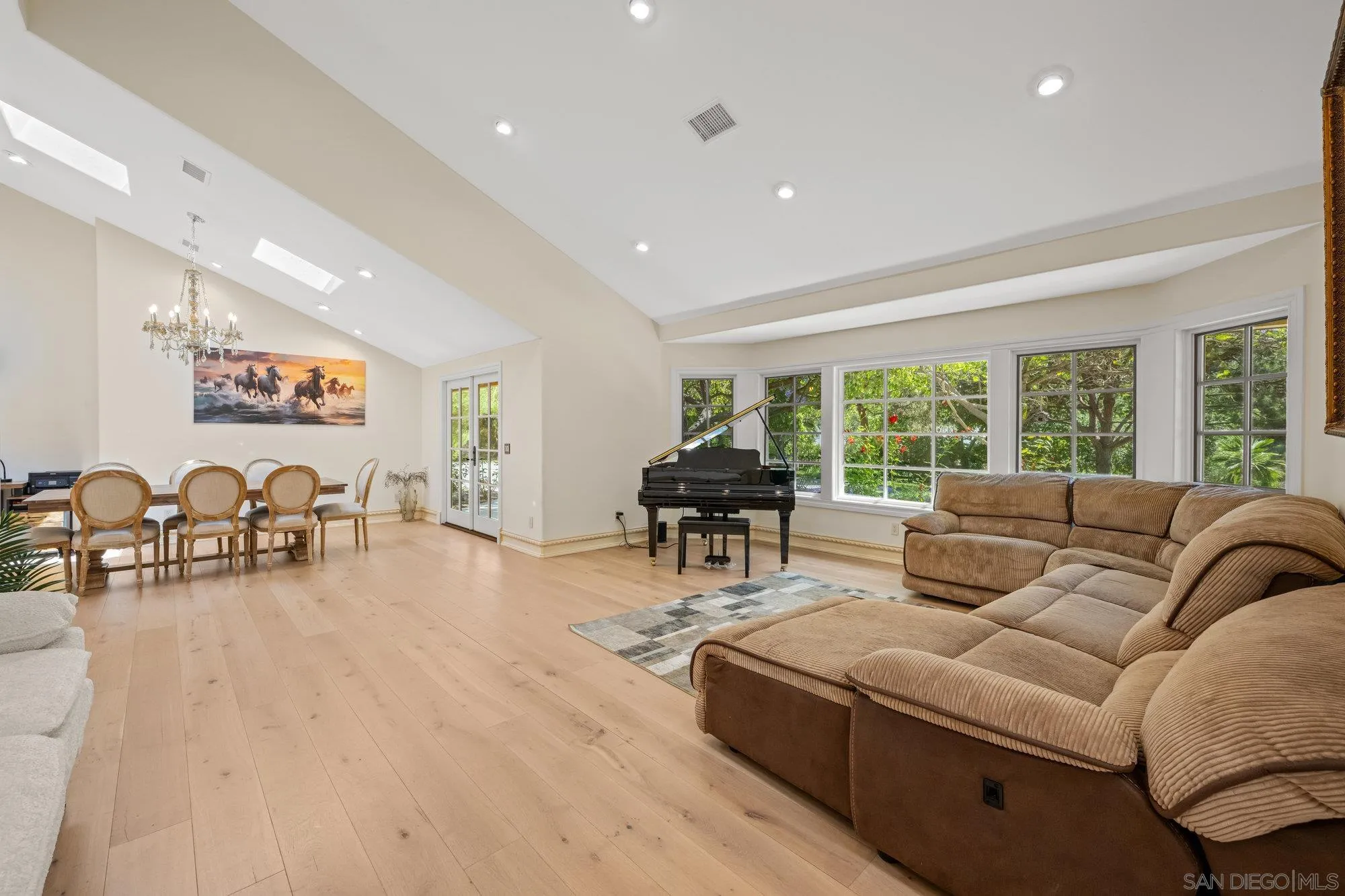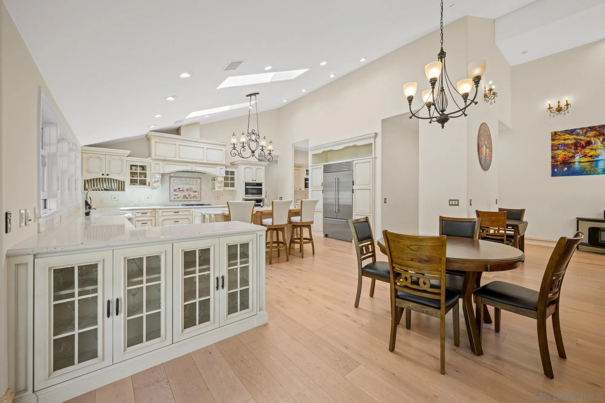 Experience elevated one-level living on 2.75 ultra-private, flat acres in Rancho Santa Fe's exclusive Covenant. Rebuilt in 2017 with meticulous attention to detail, this 4,550 sq ft custom estate blends timeless European design with modern California ease. The open-concept floor plan features 5 en suite bedrooms and 5.5 baths, soaring ceilings, and expansive living spaces filled with natural light. The chef's kitchen is a true centerpiece, showcasing sleek European cabinetry, top-of-the-line Miele appliances including dual cooktops and warming drawer, plus whole-home water filtration. A formal dining space and stone-clad fireplace anchor the seamless transition to the elegant family room, creating an inviting space for both entertaining and everyday living. Curated with designer stonework, custom fireplaces, and smart home features--including integrated speakers and security cameras--this home offers effortless sophistication. Outside, enjoy lush landscaping, a sparkling pool and spa, covered patio, and ample parking for up to 18 vehicles. A separate dog wash station with private access adds thoughtful convenience. Located on the desirable west side of the Covenant, minutes from Roger Rowe School, RSF Golf & Tennis Clubs, and village amenities. This is Rancho Santa Fe luxury at its finest--single-level, serene, and simply exceptional.