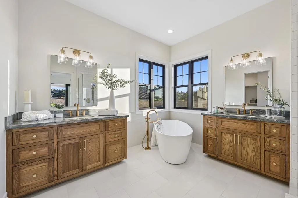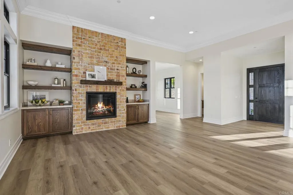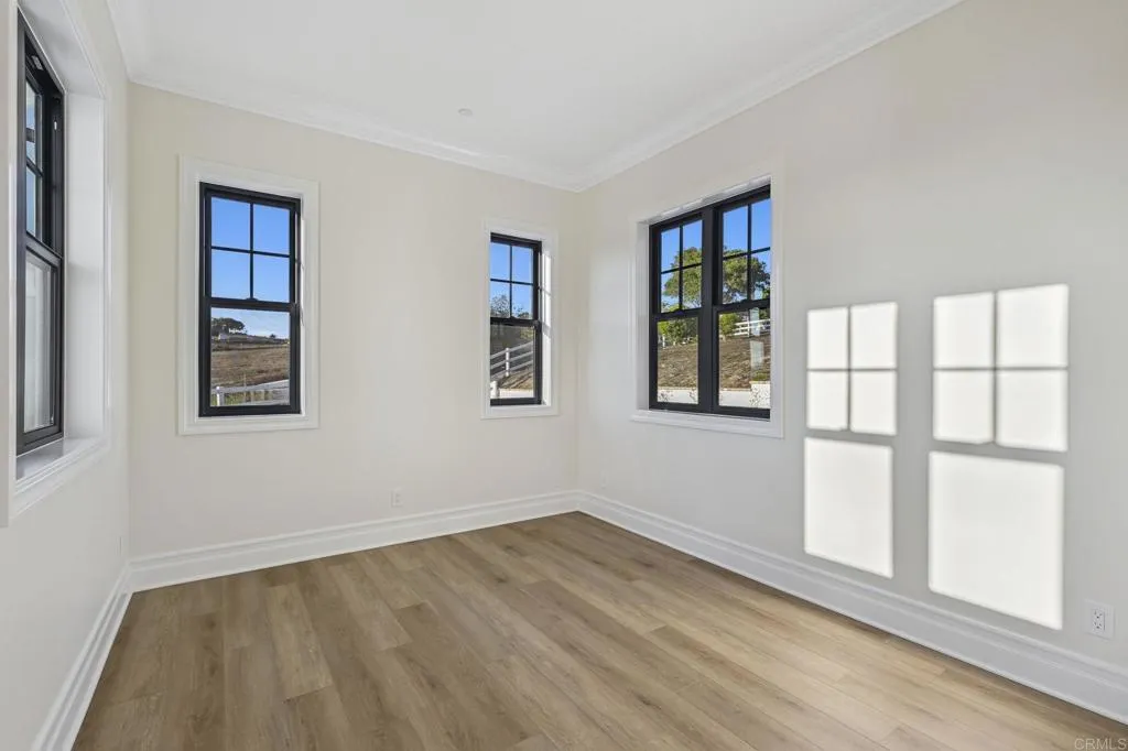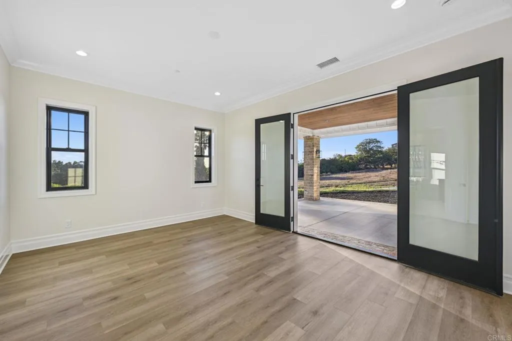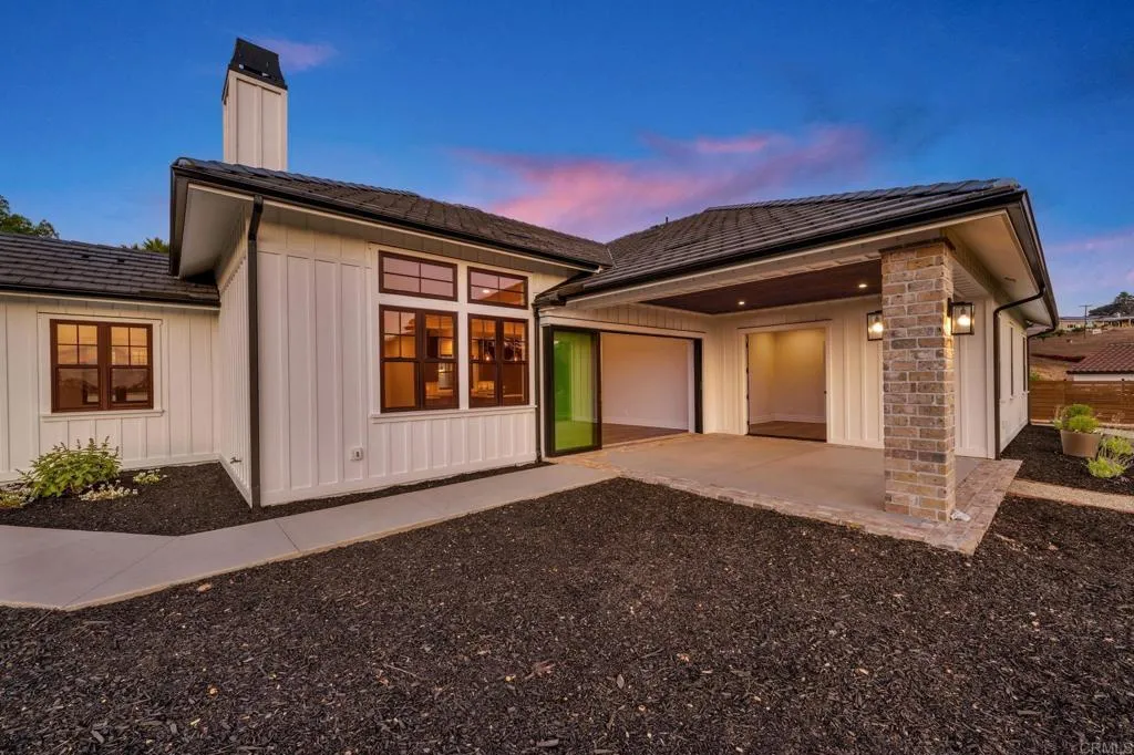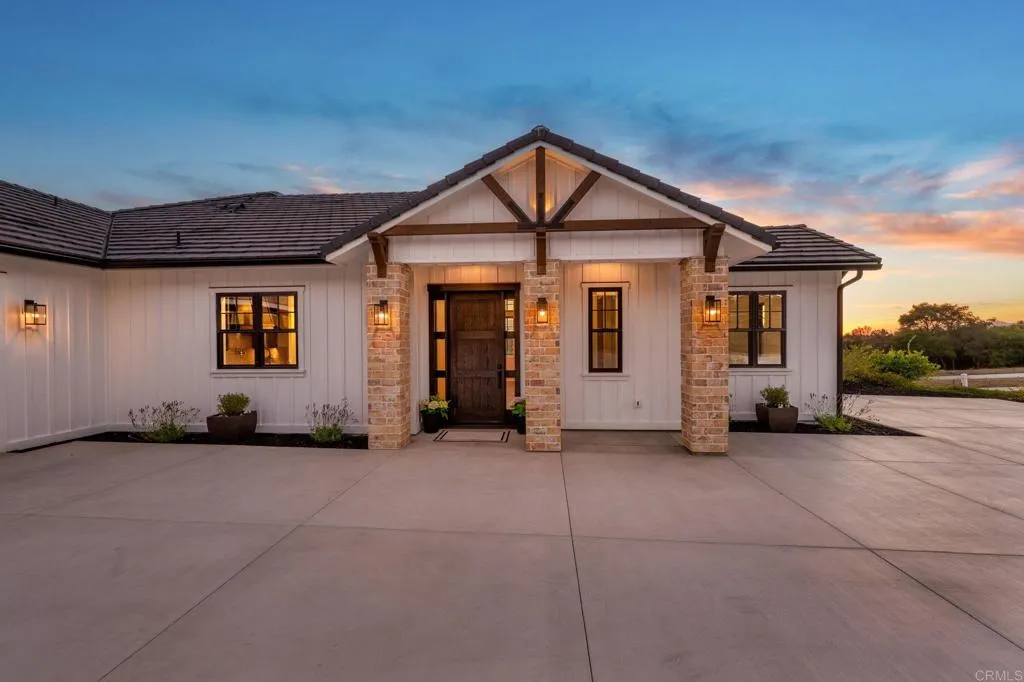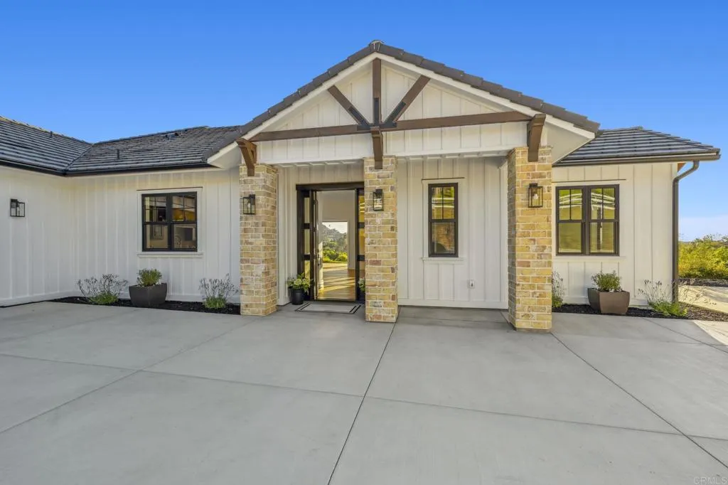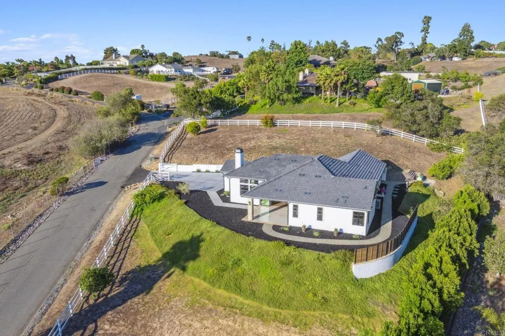 Brand new custom one level home located in the coveted Morro Hills area of Fallbrook. Volume ceilings with crown molding, cantina disappearing doors to covered brick laced patio, high end brushed bronze fixtures, quartzite counters and many designer touches. Top quality built in custom cabinetry throughout the home. Fully fenced parcel and room for RV or boat parking. Zoned for horses, chickens and any 4-h projects you may want. Enjoy the dramatic sunset vistas setting over the treetops and the cooling ocean breeze from your large covered patio adjoining the great room and primary bedroom suite. With uncompromising quality you will notice upon entering this special home, you will not want to miss this opportunity. Plan your private tour today!